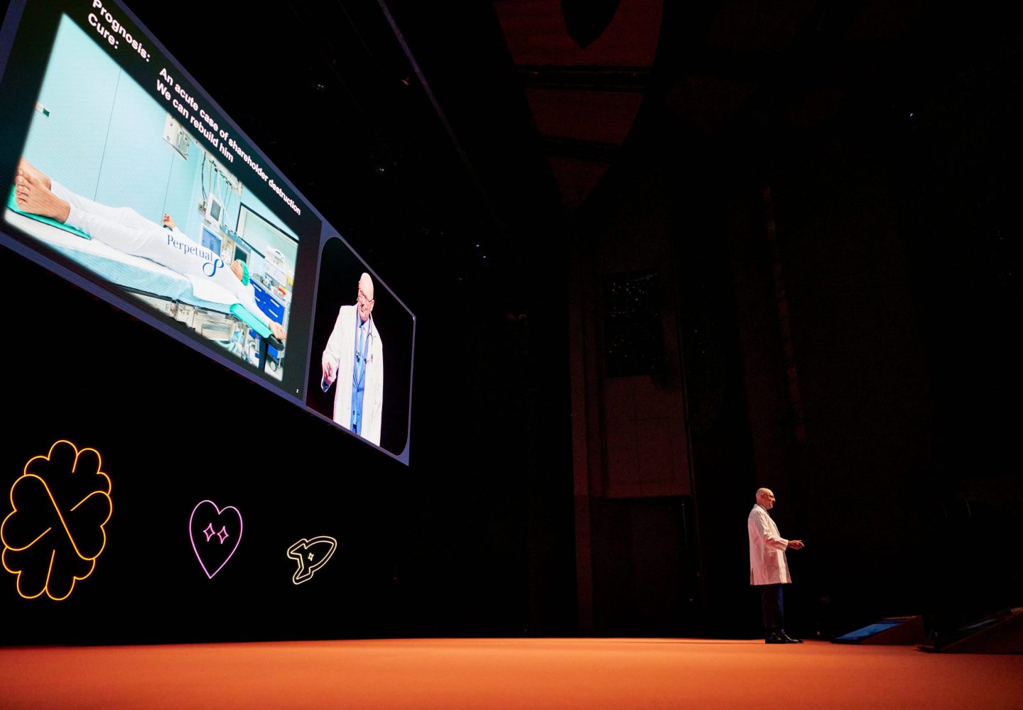 “The patient I’m diagnosing today, is suffering from a severe case of shareholder wealth destruction – it’s Perpetual!” he said at the conference, which raises money for medical research. “Perpetual is at a 20-year low. It wasn’t that long ago the stock was at $80. The problem has been very poor leadership at the very top, poor capital allocation and woeful execution.”